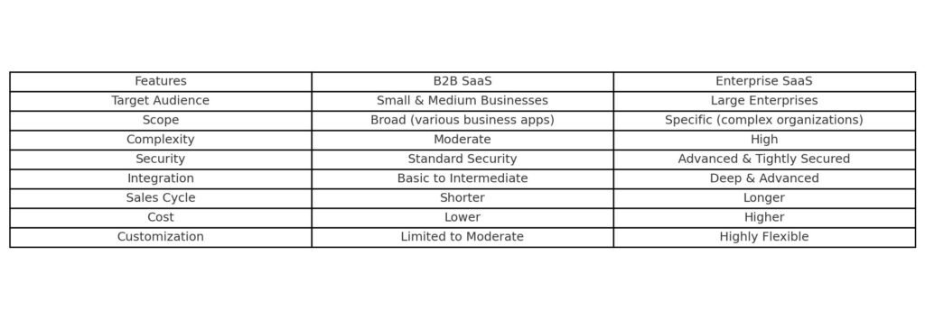 Its sales cycle is longer and the cost is also higher than B2B SaaS. Pricing models and payment terms are also flexible, so that enterprise-level customization and implementation can be done smoothly. Harvard Business Review also notes that enterprise SaaS requires long-term vendor relationships, deeper ROI assessments, and strategic scaling considerations. (hbr.org)