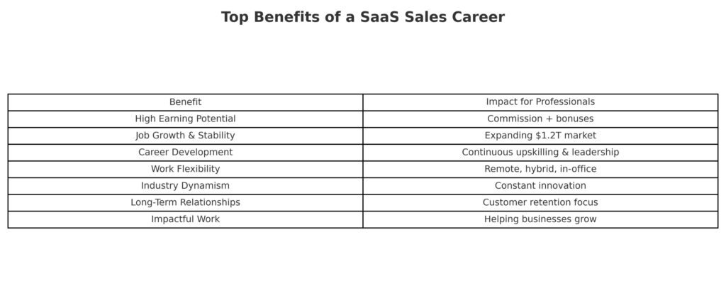SaaS sales provides ongoing learning and development. Professionals can grow by mastering new sales strategies, understanding products deeply, or advancing into leadership roles.